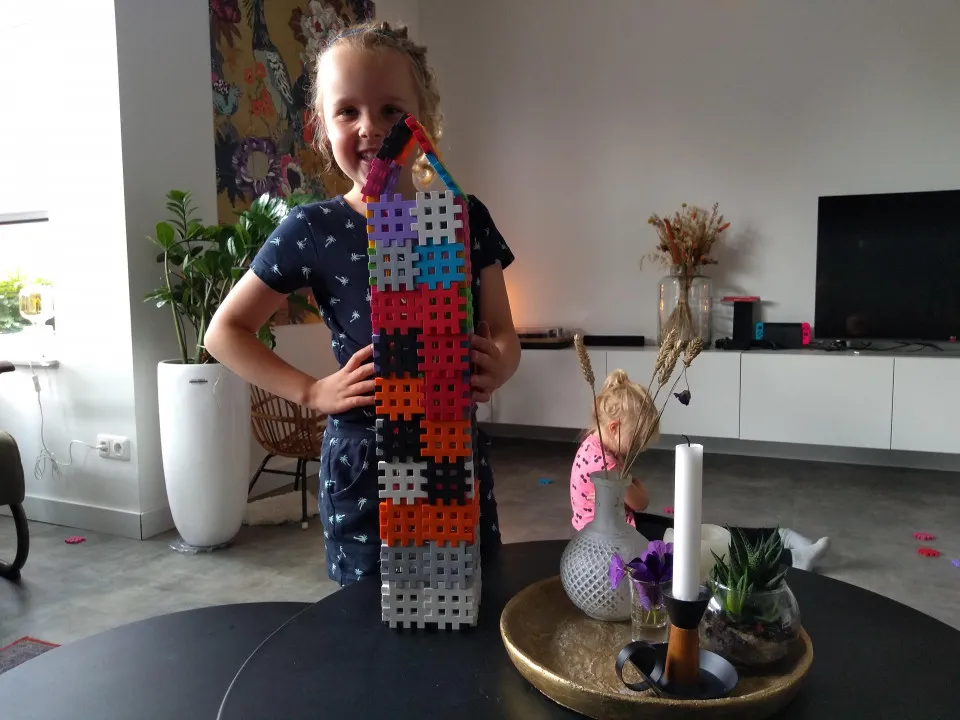 Wij vinden dit speelgoed een go! Wij hadden eigenlijk nog geen constructiespeelgoed in huis en dit is een hele leuk set om mee te beginnen. Het vergt geduld, creativiteit en prikkelt de fantasie van een kind en dat vind ik een belangrijk aspect als ik speelgoed aanschaf. Er is geen goed of fout in bouwen, je haalt het eenvoudig uit elkaar en begint opnieuw. Het speelgoed brengt een stukje rust na een dag vol prikkels. Geen drukke kleuren, licht of geluid en het flexibele materiaal ligt fijn in de hand. Dit speelgoed kan ook gewoon op de grond blijven liggen als onze jongste dochter door de kamer kruipt. Dit in tegenstelling tot bijvoorbeeld Playmobil of LEGO. Ze haalt de bouwwerken ook niet snel uit elkaar tot opluchting van de oudste drie. Het is ook geen probleem als kleine kinderen het speelgoed in hun mond stoppen, deze blokken zijn groot genoeg en met een sopje zo weer schoon.